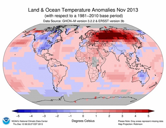 C’est confirmé: Novembre 2013 a été le plus chaud mois de novembre , sur Terre, depuis au moins 1880.