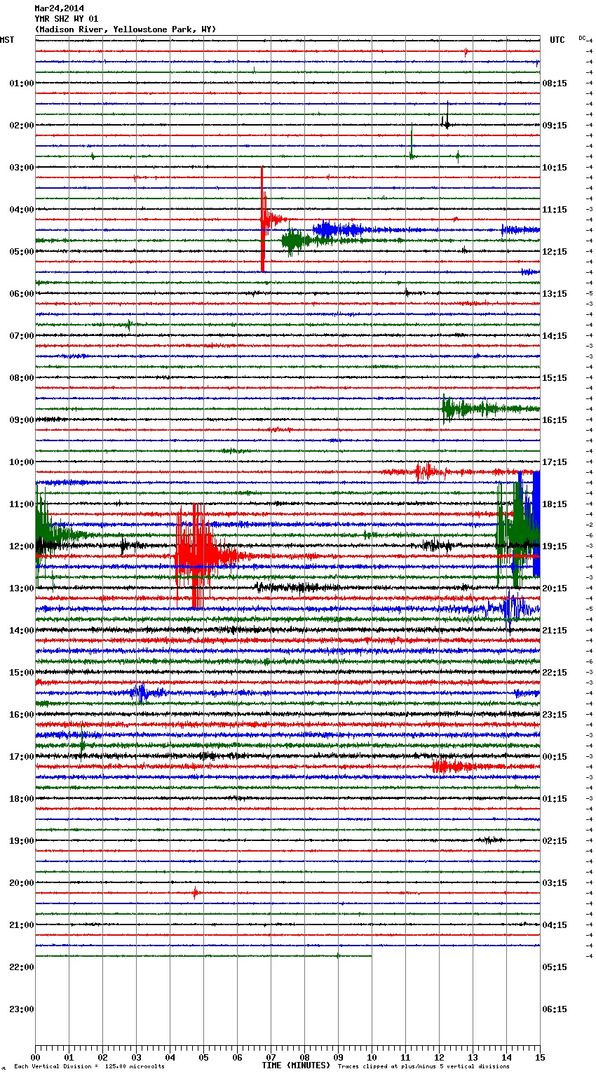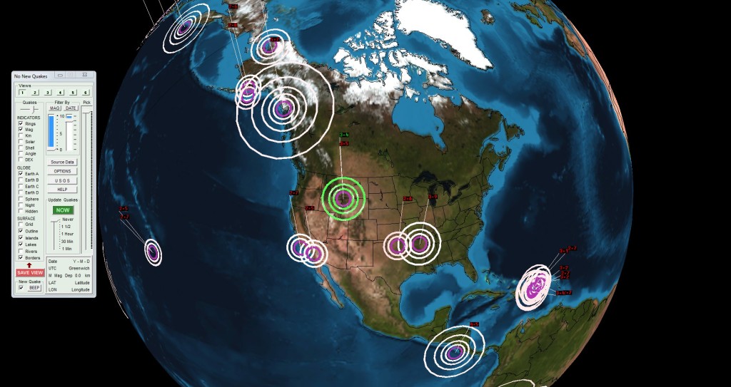 Les tremblements de terre récents qui viennent de faire les nouvelles, mais l’ensemble de la zone gronde depuis le début de l’année 2014. Les graphiques de l’USGS montrent que les tremblements de terre supérieurs à 3.0 ampleur se sont produits loin et dessus pendant plusieurs jours et tous sont venus de la région de la chambre magmatique de Yellowstone, qui, selon un radar à pénétration de sol, s’étend à l’ouest jusqu’au la ligne d’état de l’Orégon.