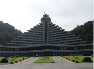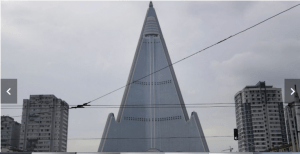 Kim aime les pyramides. Au-dessous d’un autre hôtel pyramidal à Pyöngyang, la capitale de NK.