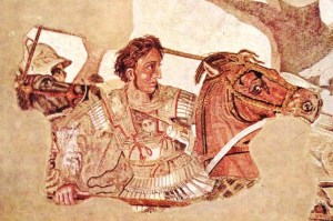 Alexandre le Grand dans la bataille d’Issos. (Extrait de la mosaïque du Museo Nazionale di Napoli).