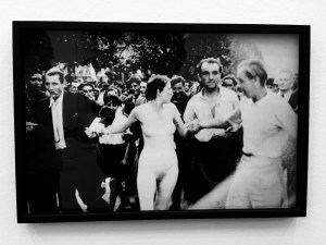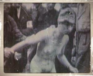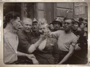 Femme allemande dénudée et battue devant un groupe de personnes.