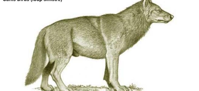 Canis dirus (mot-à-mot « loup sinistre ») est un canidé qui a habité l’Amérique du Nord au Pléistocène et s’est éteint il y a environ 10 000 ans. Bien qu’il soit proche du loup gris, et par conséquent du chien, il n’est pas considéré comme leur ancêtre.