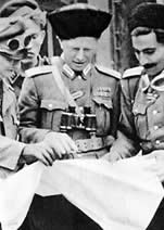 Kulakov, l’un des vieux et célèbres atamans (chefs cosaques), qui était considéré comme mort depuis 1919, est sorti de sa cachette et, accompagné de centaines de cosaques en tenue resplendissante et de magnifiques chevaux, a fait une incursion triomphale dans Poltava. Des milliers de cosaques dans le prisonnier de guerre. les camps offraient leurs services dans le premier contre les Soviétiques. Même les restes de la tribu Kalmuk, estimée à environ 60 à 80 000 personnes, ont formé et équipé 16 escadrons de cavalerie qui ont dégagé les steppes des unités soviétiques restantes, sans aucune pitié. Le général Koestring, qui connaissait bien la Russie et devint gouverneur du Caucase en août 1942, pensait rêver ou regarder un grand film historique (8). Telle était la revanche des Cosaques pendant des années de terreur de la part du NKVD.