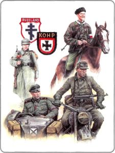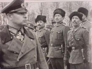 Les commandants allemands avaient une grande sympathie pour les cosaques, même si ceux-ci ne dissimulaient pas leur ambition politique de construire leur propre État, Kazakia. Leur bravoure, leur haine généralement connue des Soviétiques et les services rendus dès le début, en particulier dans la lutte contre les partisans soviétiques, donnèrent des résultats rapides. Dès le milieu de 1942, une formation de cavalerie cosaque existait à Mohylev, sous le commandement d’un ancien major soviétique, Kononov, qui avait rejoint les Allemands à la première occasion avec la plus grande partie de son régiment et avait commencé à servir du côté des Allemands en gardant la ligne de communication contre les partisans soviétiques (7).