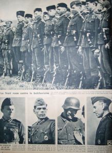 Le précurseur des formations de volontaires était un service auxiliaire volontaire, de caractère para-militaire, qui a été lancé à l’automne 1941 par les commandements allemands sur le front. De leur propre initiative, ils ont organisé des unités auxiliaires de divers services, composés de déserteurs soviétiques, de prisonniers et de volontaires de la population locale. Ces soi-disant « Hilfswillige » ou « Hiwi » étaient employés comme sentinelles, chauffeurs, commerçants, ouvriers dans les dépôts, etc. L’expérience dépassait toutes les attentes. Au printemps 1942, il y en avait déjà au moins 200 000 à l’arrière des armées allemandes et, à la fin de la même année, leur nombre serait proche de 1 000 000 (2).