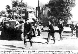 La brigade de Kaminski jouissait de la pire réputation possible parmi tous ceux qui avaient quelque chose à voir avec cela, sans exclure les Russes des autres formations. La brigade de Varsovie a connu une effroyable renommée en 1944. Seule la tristement célèbre brigade SS Dirlewanger, composée de criminels volontaires des prisons et des camps de concentration allemands, pouvait égaler les actes de la brigade de Kaminski. Varsovie se levant, Kaminski a été abattu par ordre de son protecteur Himmler, et les restes de sa brigade ont été envoyés à l’armée de Vlasov qui était alors en formation.