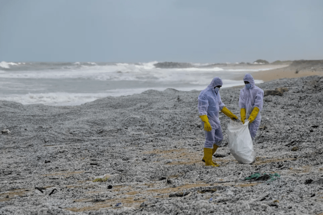 Les autorités ont également temporairement interdit la pêche dans ces zones ; et l’Agence nationale de recherche et de développement sur les ressources aquatiques échantillonne et analyse les poissons morts et les tortues trouvés le long de la côte ouest pour voir si leurs décès sont liés aux déversements.