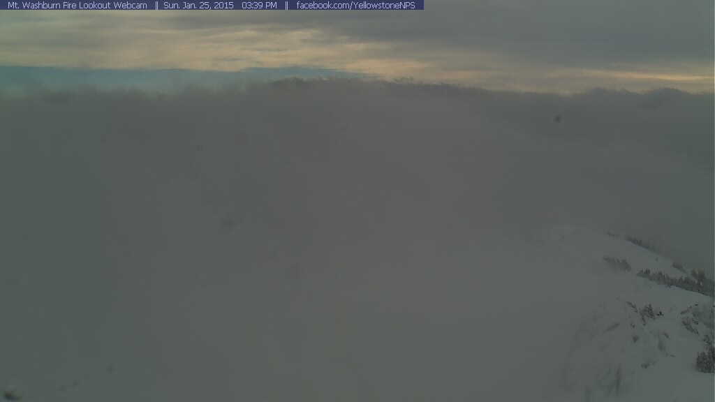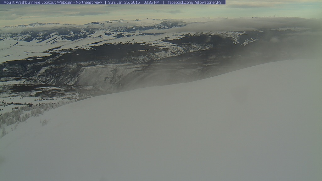 Cette webcam sur Mont Washburn capture normalement une vue à vol d’oiseau du parc plein sud. Dans cette vue, vous pouvez voir le Grand Canyon de Yellowstone, Hayden Valley, et par temps clair, les Tetons dans le parc national de Grand Teton. Pendant la saison d’été, cependant, la webcam est souvent repositionné par la recherche d’incendie qui regarde pour voir si cette tempête dans la distance fera déclencher un incendie. En hiver, la vapeur à partir de Washburn Hot Springs est facilement visible au premier plan.