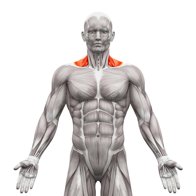 Pour ceux qui ne connaissent pas le système musculo-squelettique, ce qui suit est un diagramme qui met en évidence l’emplacement exact des muscles trapèzes qui s’étendent du cou aux épaules (représentés en orange ).