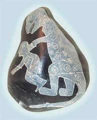 Le plus large des artéfacts trouvés à La Maná est une pierre ronde de granite composée de plusieurs symboles et lignes incrustées. Après observation on réalise que c’est une ancienne map monde ou la plupart des continents sont représentés. On peut même constater qu’à la gauche de ce qui représente l’Amérique du sud se trouve un morceau de Terre de la taille de Madagascar, et à la droite des Amériques se trouvent un plus gros morceau de Terre. Il y a trois parcours distincts, deux petits et un très visible. Sur le gros parcours au niveau d’Israël se trouve un œil rouge incrusté (l’œil se trouve exactement là ou est Jérusalem). C’est une énorme découverte il y a de quoi spéculer. On pourrait dire que le morceau de Terre dans l’Atlantique est l’archipel d’Atlantis, et celle dans le pacifique représente Mû. On pourrait voir ça comme un tour du monde, comme une autoroute qui connecte tout avec tout. Ou bien les grandes connexions du monde, les grands réseaux de trafic. Qui sait, mais de voir ces deux continents qui n’existent plus aujourd’hui indique que c’est une très ancienne mappemonde.