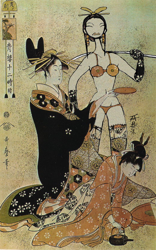 Pour faire ceci (c’est-à-dire pour baiser le yoni), on imitera le baiser sur la bouche. Lorsqu’un homme et une femme sont couchés en sens inverse,c’est-à-dire la tête de l’un vers les pieds de l’autre, et se livrent à cette espèce de congrès, cela s’appelle le congrès du corbeau.”Ces sortes de choses passionnent tellement certaines courtisanes,qu’elles abandonnent des amants distingués, honnêtes et instruits, pour s’attacher à des personnes de basse condition, telles que des esclaves et des conducteurs d’éléphants.L’Auparishtaka, ou congrès buccal, ne doit jamais être pratiqué par un Brahmane lettré, par un ministre chargé des affaires d’un État, par un homme de bonne réputation ; car, si la pratique en est permise par les Shastra, il n’y a pas de raison pour qu’on la mette en œuvre,si ce n’est dans les cas particuliers.Ainsi, par exemple, on mentionne dans les livres de médecine le goût,la force et les qualités digestives de la viande de chien, mais il ne s’ensuit pas que le sage doive en manger.Par contre, il y a des hommes, des lieux et des temps à l’égard desquelson peut user de ces pratiques. Un homme doit, en conséquence, considérer le lieu, le temps et la pratique qu’il s’agit d’opérer, si elle convient à sa nature et à lui-même ; après quoi il pourra ou non s’y livrer, selon les circonstances.Mais après tout, ces choses étant faites secrètement et l’esprit de l’homme étant variable, comment savoir ce que fera une personne dans tel ou tel temps et pour tel ou tel objet ?