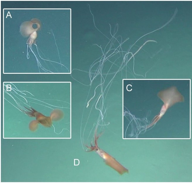 «J’ai été stupéfait et excité quand j’ai vu le calmar Bigfin pour la première fois sur une photo prise par notre appareil photo», a déclaré Osterhage, chercheur marin au sein de l’Organisation de recherche scientifique et industrielle du Commonwealth (ou CSIRO, l’agence scientifique du gouvernement australien), dans un e-mail. « Je l’ai reconnu immédiatement, avec ses grandes nageoires distinctives et ses bras et tentacules extrêmement longs et minces. »