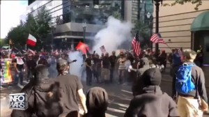 CBS reports that Portland revoked the patriots permit to gather as soon as the riot broke out. That’s not right. That’s giving the leftists a victory, which is probably what liberal Portland wanted anyway. The leftists started the violence, but the right got blamed by the lying Portland police.