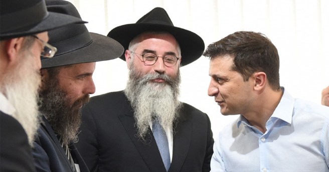 Zelensky entouré d’un groupe de rabbins juifs en Ukraine.