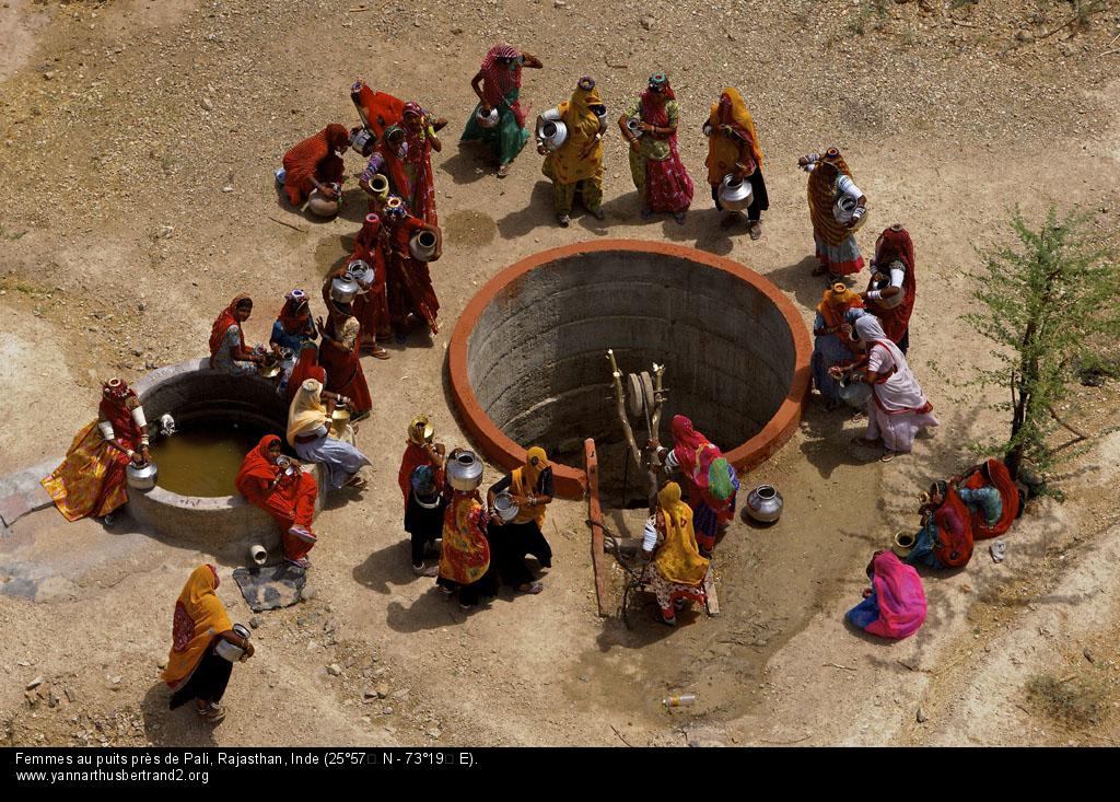 Femmes puisant de l’eau au puit près de Pali,Rajastan ,en Inde.Les ressources déjà limitées de la Terre vont devenir de plus en plus rares,menaçant toutes les formes de vie. Nous,les Humains de la Terre ,avons à faire un sérieux examen de conscience.