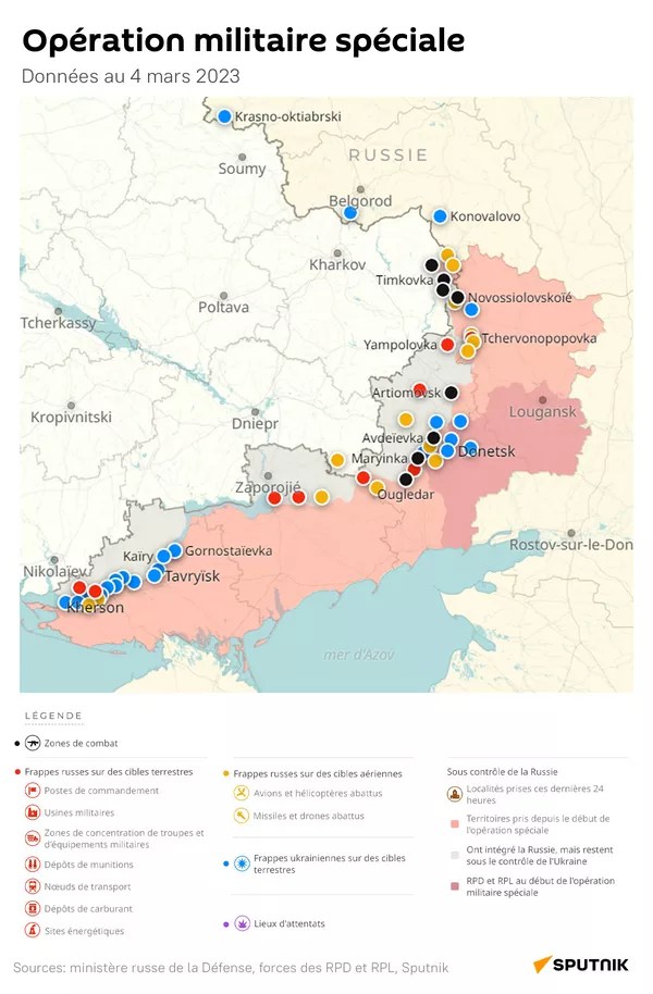 Poutine a déclaré dans son allocution aujourd’hui “Nous allons atteindre les objectifs que nous avons définis, pas à pas, progressivement et prudemment”, a-t-il insisté. Il n’y a donc aucune annonce d’un changement de format sur le plan militaire. Dans la déclaration ci-dessus, il est même sous-entendu que le conflit pourrait se prolonger sur une longue durée. L’hypothèse d’un renforcement progressif de l’offensive reste cependant d’actualité.